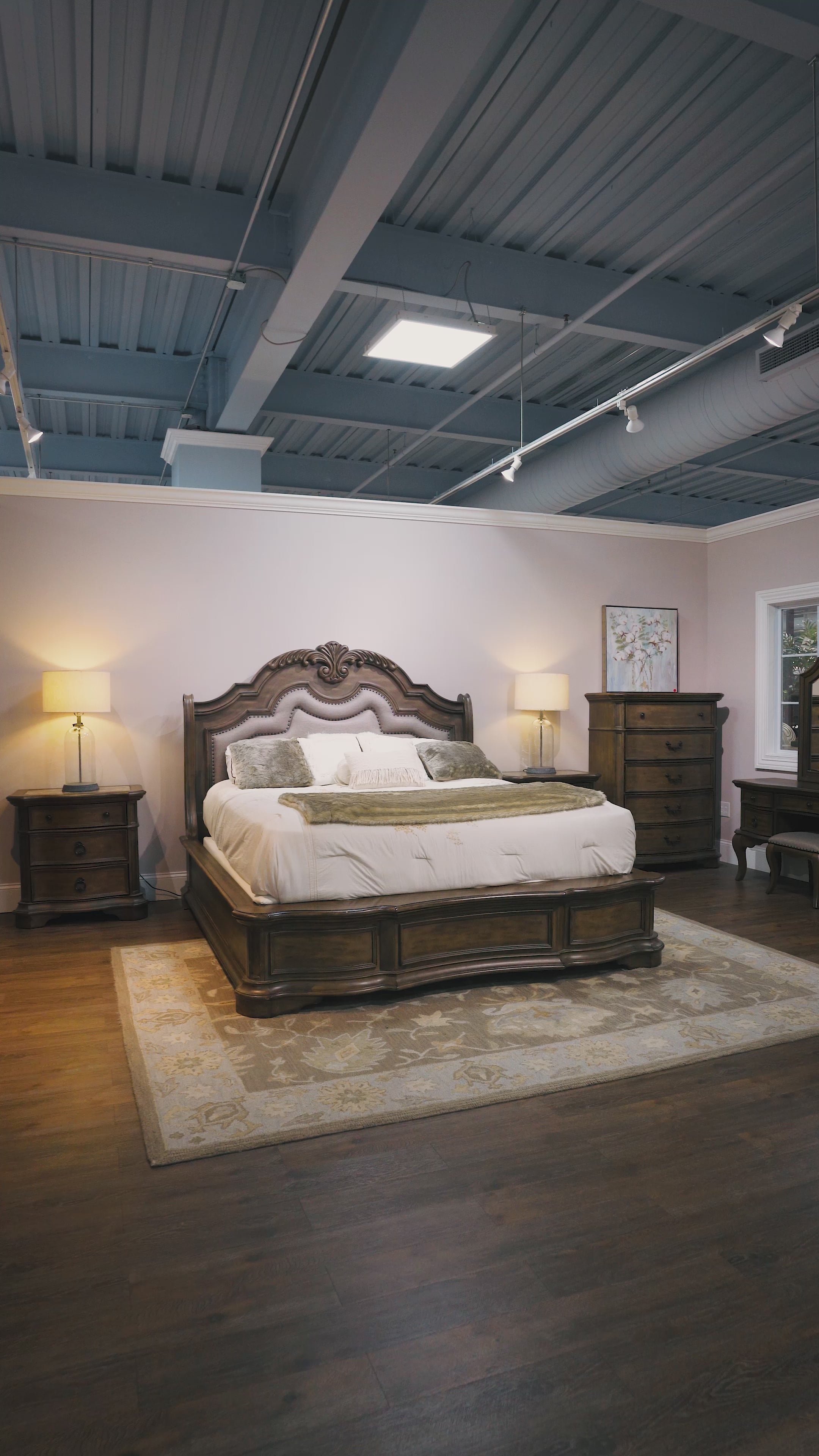 This traditional bedroom collection is infused with elegance, perfect for creating a regal feel in your bedroom. Birch veneers have been given a light brown finish to keep your room open and bright.